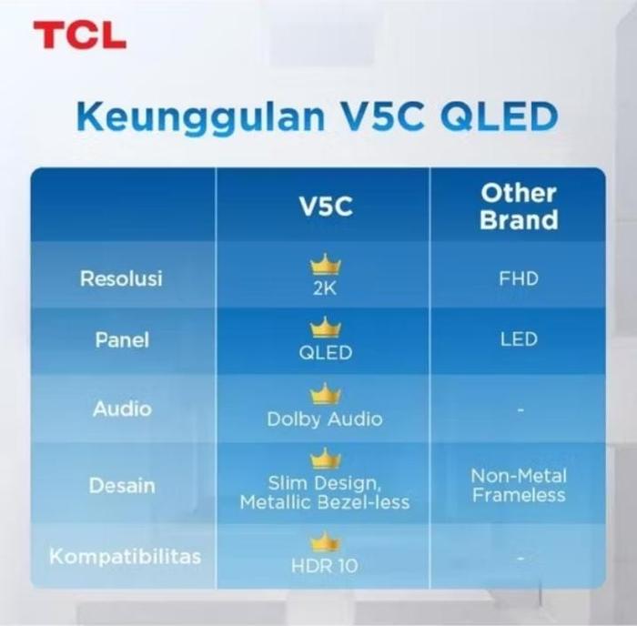 TCL 43V5C QLED Google TV 43 Inch - 2K FHD - HDR 10 - Bezel Less - Dolby Audio - Pengganti 43A9