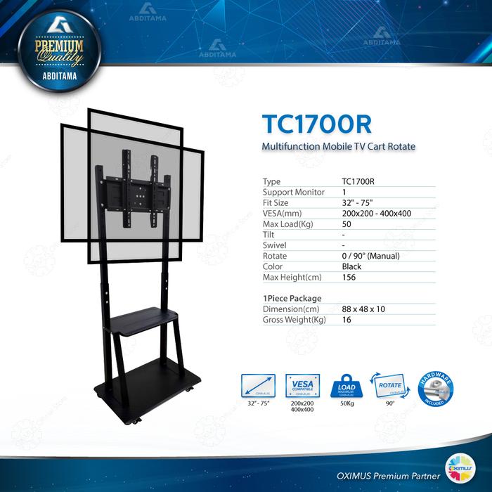 Bracket TV Standing Roda Kuat Rotasi 32 - 75 Inch OXIMUS TC1700R Rotate