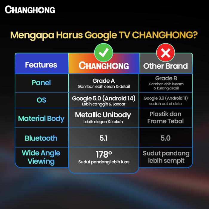 Changhong Smart TVL32M91Google 32 inch Smart TV Digital TV - HDR10 - Dolby Audio - Netflix - Youtube