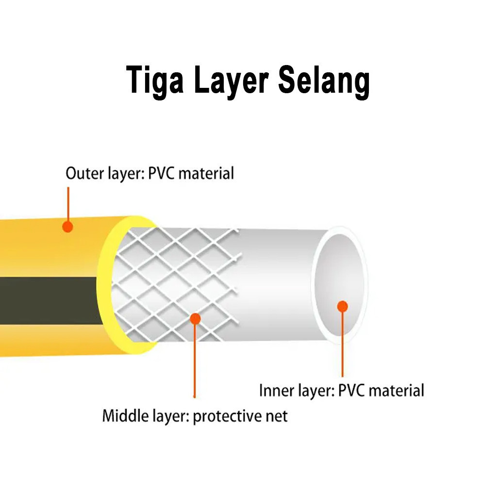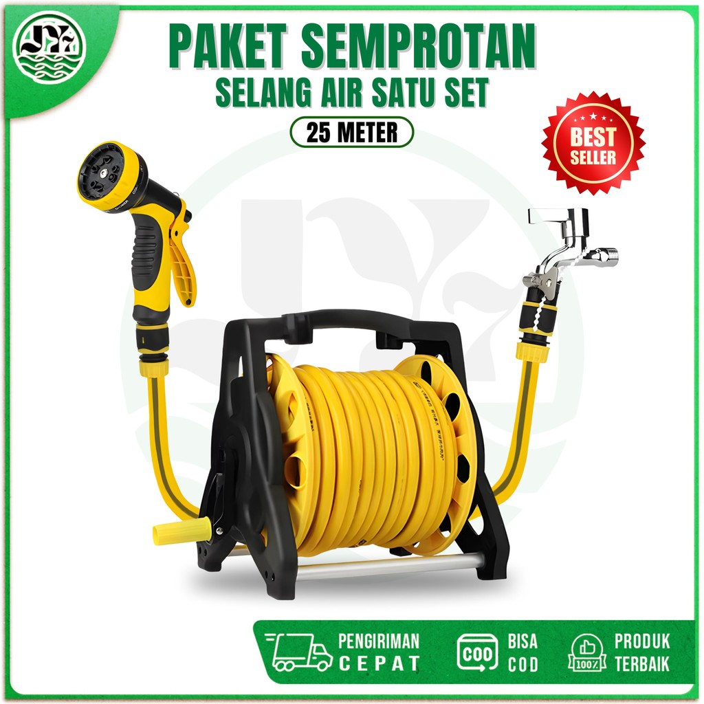 Paket Semprotan Selang Air Gulung 25 Meter Kuning Jet Spray Taman kebunan Alat Cuci Motor Mobil Termurah