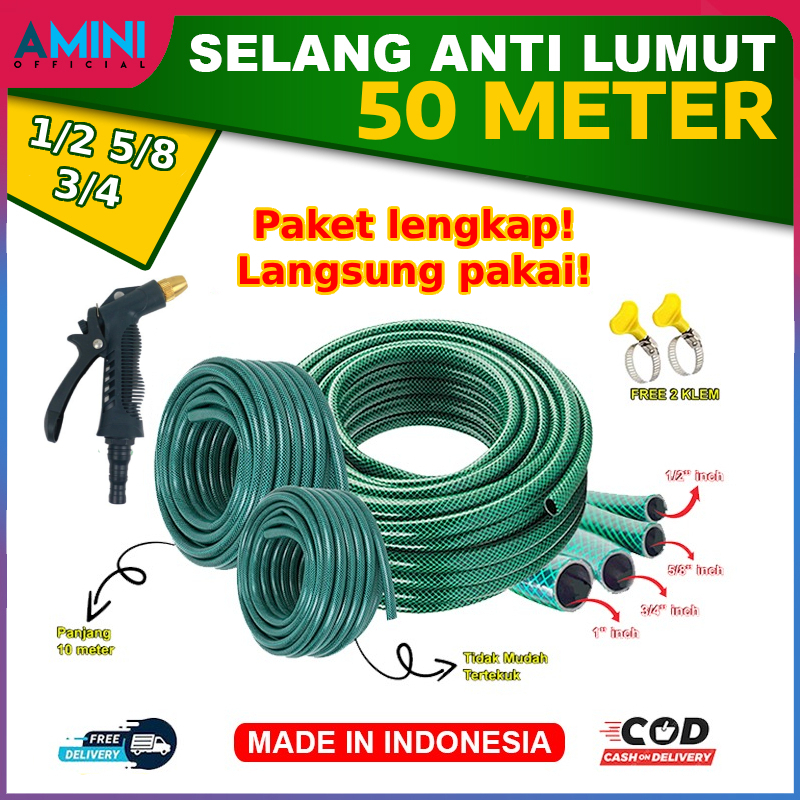 AMINI Paketan Selang Air 50 Meter 1/2 5/8 3/4 Inch Semprotan Air Dengan Selang Benang Anti Lumut Cuci Mobil Siram Tanama