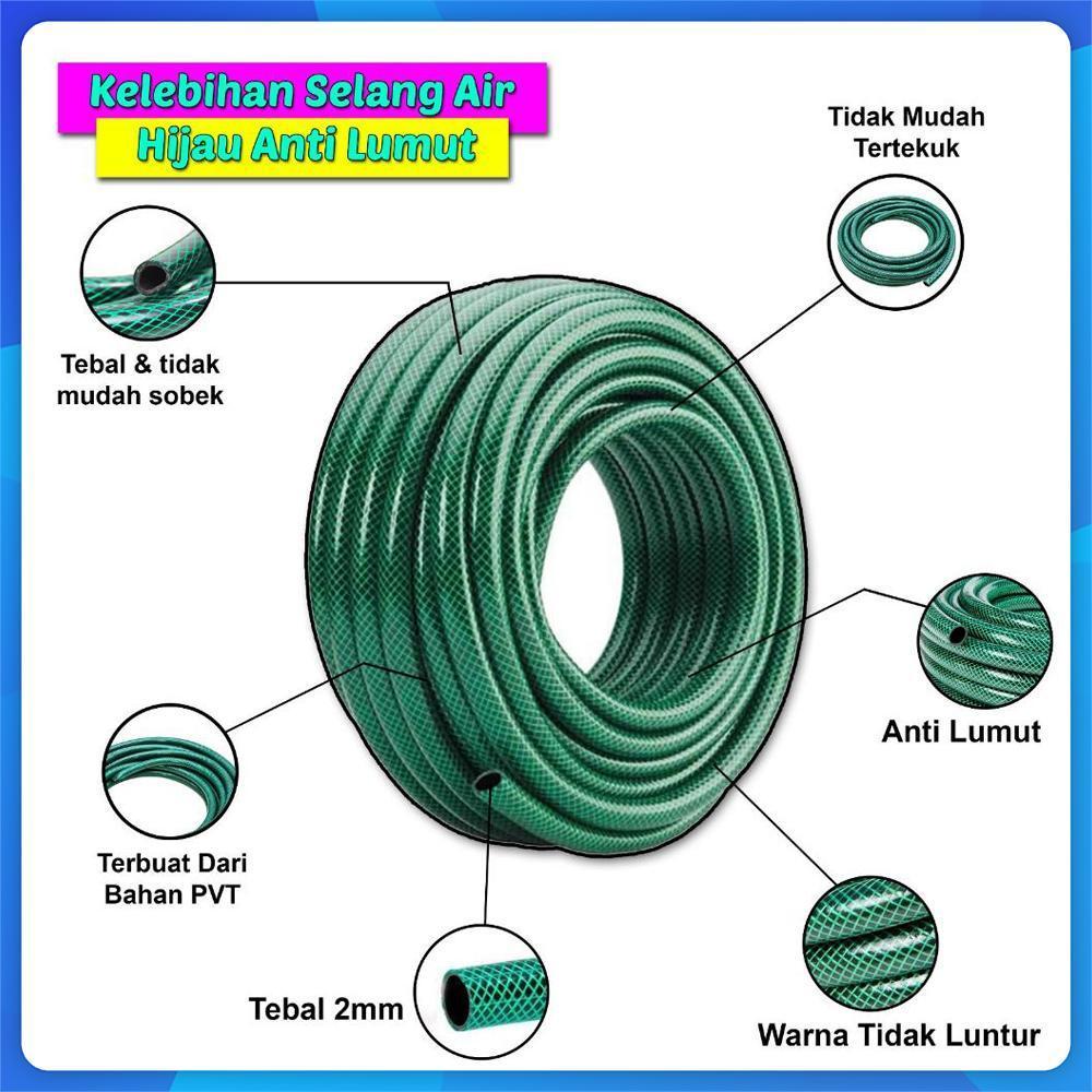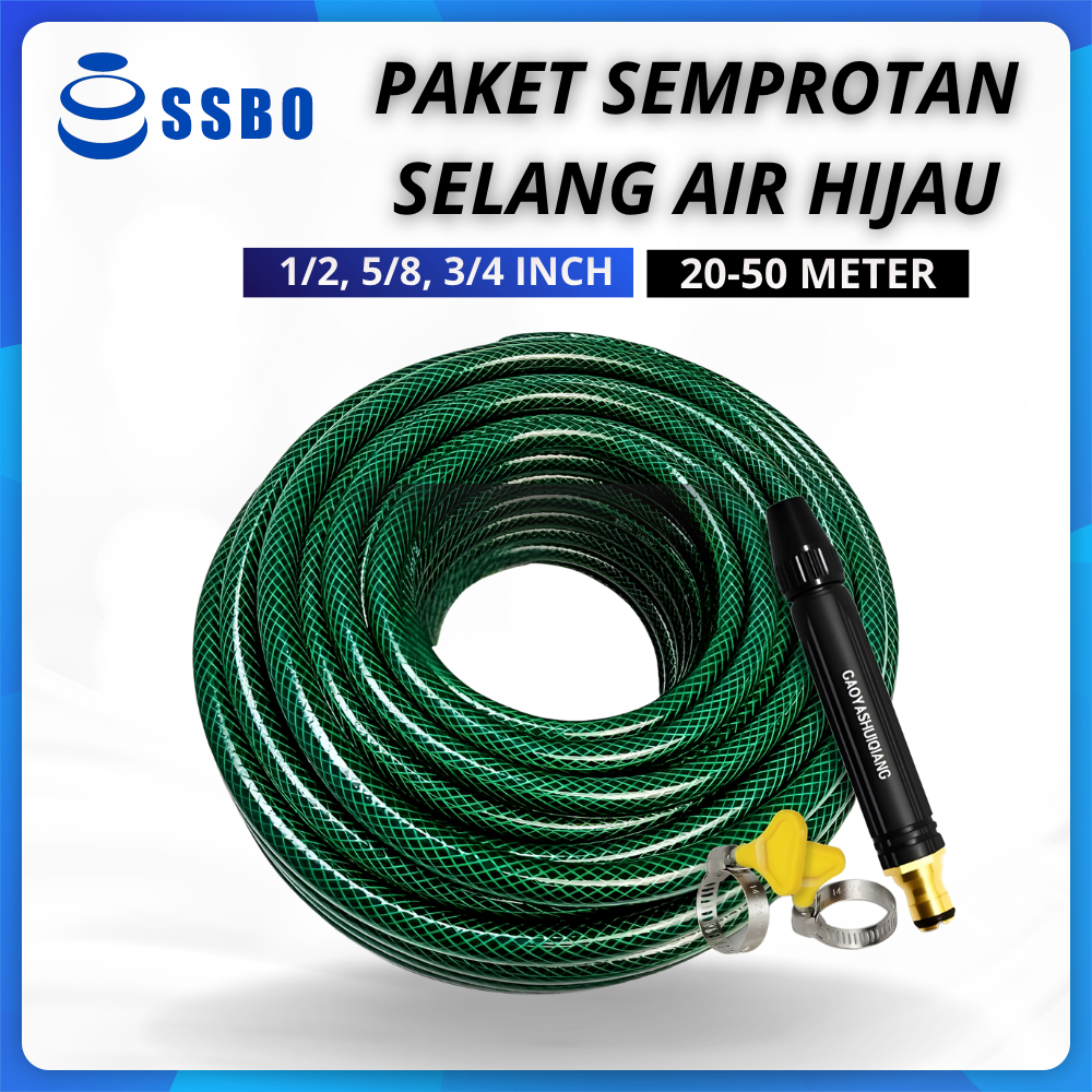 SSBO Paket Selang Air Hijau 5/8, 3/4 Inch 5-20 Meter Selang Serat Benang Jet Spray Cuci Motor Mobil Kebun Taman Bisa