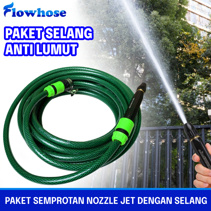 FLOWHOSE Selang Air Cuci Motor 15 Meter Sepaket Selang Anti Lumut Dengan Semprotan Air Watergun Lurus Lengkap Dengan Kon