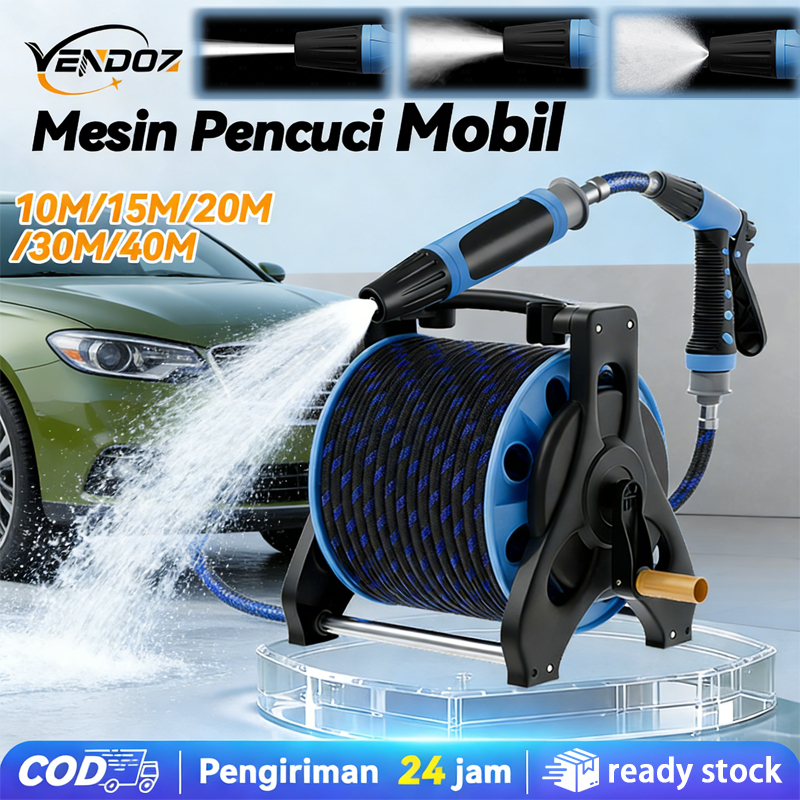 Mesin Pencuci Mobil Set Semprotan Selang Air Gulung Fleksibel Hose Reel 6IN 1 Jet Cleaner 10-40M Reel Holder Semprotan A
