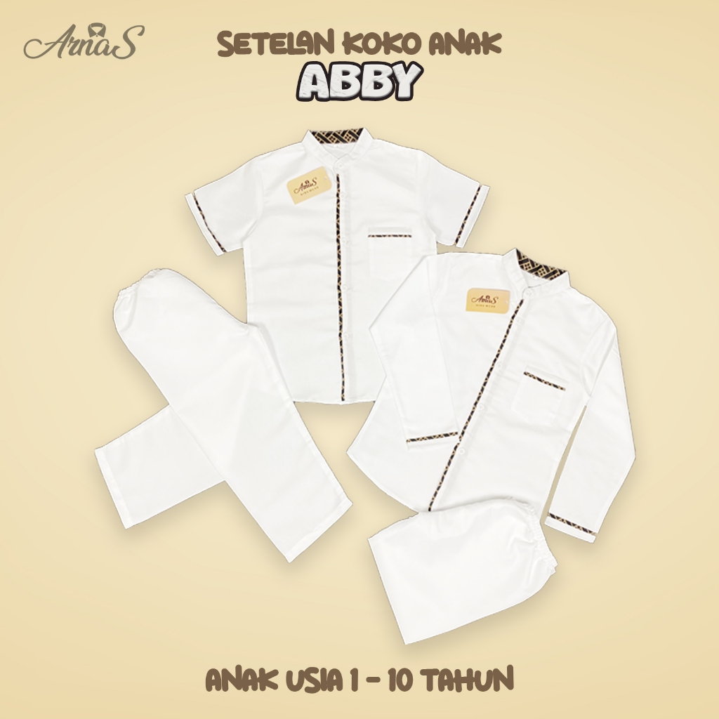 Arnas - Setelan Koko Anak Laki-Laki ABBY Usia 1-10 Tahun Putih Kombinasi Terbaru | Setelan Baju Celana Koko Anak