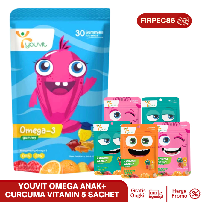 YOUVIT Vitamin Anak Paket LENGKAP: Nafsu Makan, Daya Tahan Imun, Otak Cerdas | Multivitamin, Omega 3, Curcuma