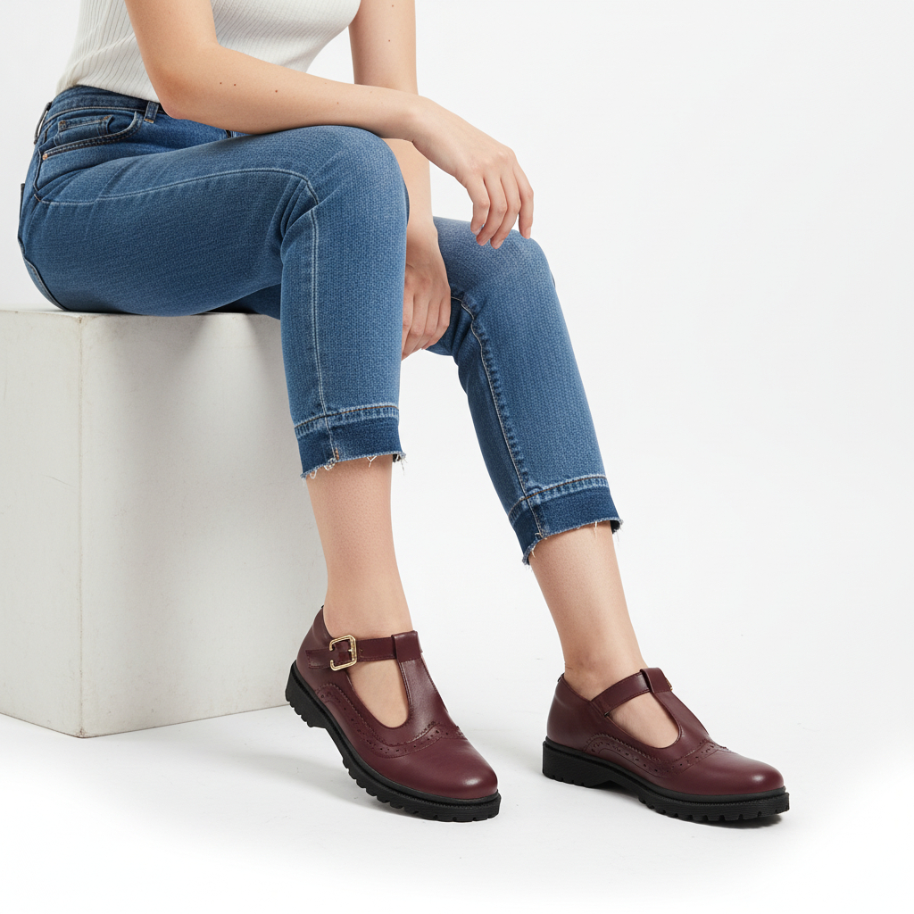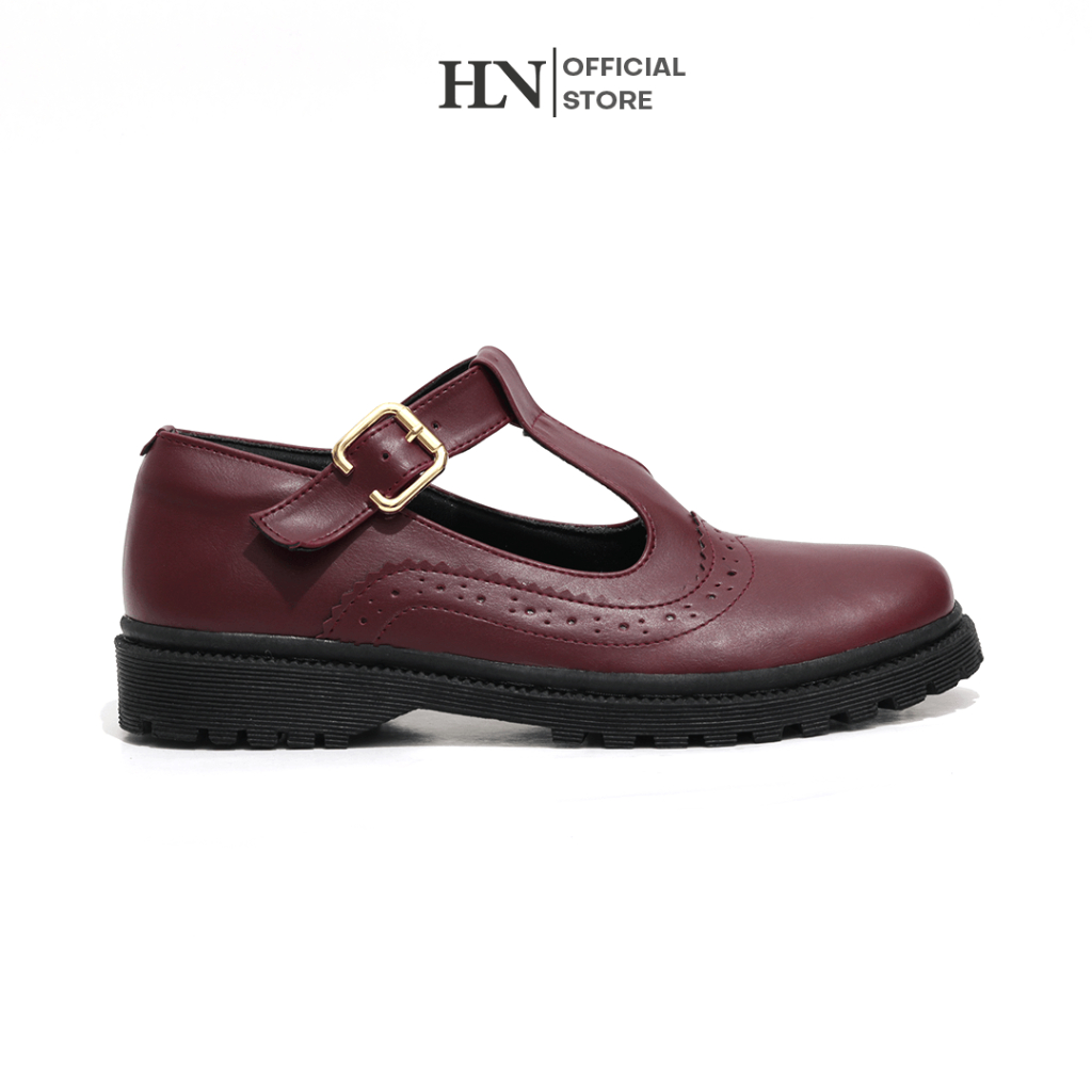 HLN Sepatu Wanita Loafers Oxford Kasual Ringan Nyaman dipakai Tinggi 2,5 cm Ukuran 36-41 Stich Burgundy