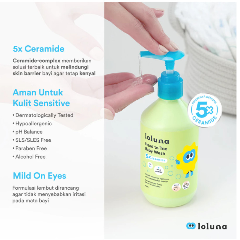 Loluna Head to Toe Wash 100ml | 300ml | 450ml - Sabun Sampo Mandi Perawatan Kulit Bayi dan Anak / Sabun untuk Newborn/ 5