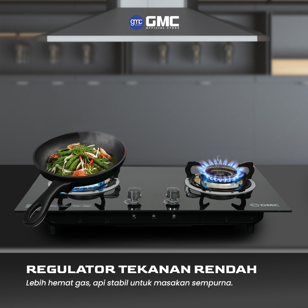 kompor GMC Kompor Kaca Premium 626 2 Tungku Tempered Glass PremiumTekanan Rendah Api Biru kompor gas rinnai 2 tungku
