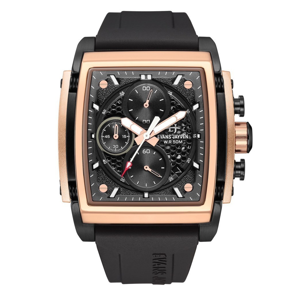 DISKON Jam Tangan Pria Evans Jayden 9619 Rubber Silicon Kaca Sapphire Chrono 5 ATM