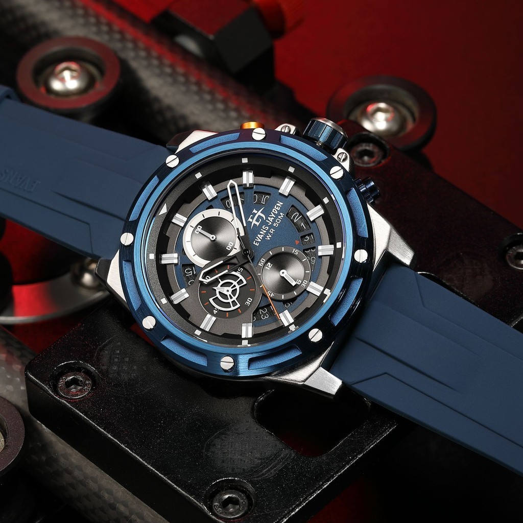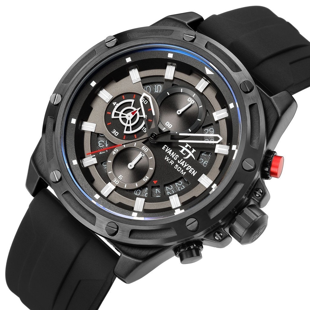 Jam tangan Evans Jayden Jam Tangan Pria 9597 Rubber Kaca Sapphire Chrono 5 ATM