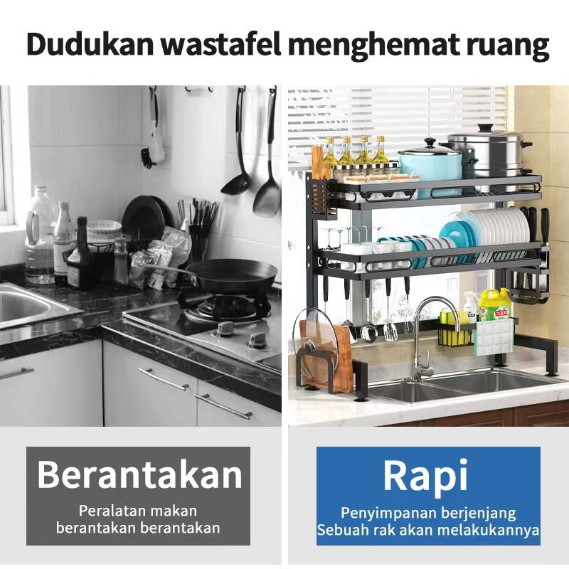 Rak Cuci Piring Wastafel Rak Dapur Anti Karat Stainless Steel Rak Piring Dengan Aksesoris