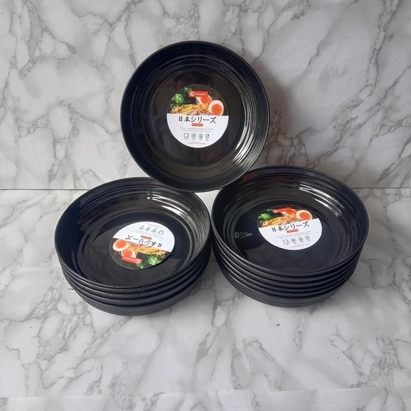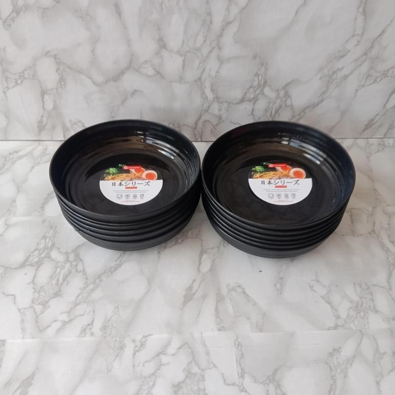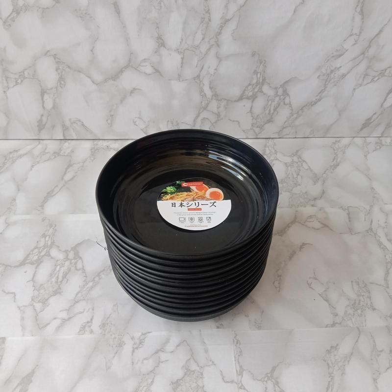 12 Pcs Piring Bulat Plastik Tahan Panas Hitam 3608 Ringkok Cekung Piring Makan Ramen Kitchenware