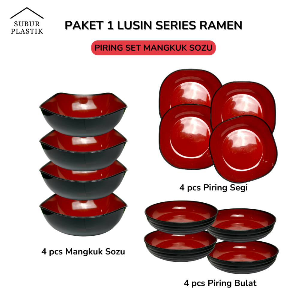 1 Lusin PAKET PIRING SET MANGKUK SOZU SERIES RAMEN 12 pcs 1 Set Plastik Alas Tempat Makan Tebal