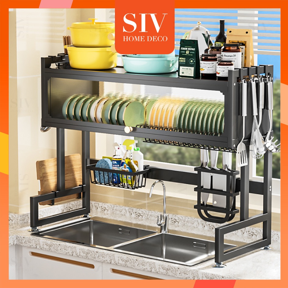 SIV Rak Piring Wastafel Dengan Kabinet Rak Wastafel Cuci Piring Rak Piring Stainless Steel Rak Dapur Multifungsi Dengan