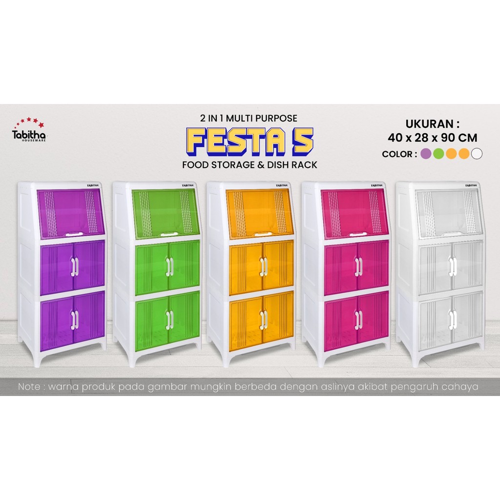 Lemari Piring Tabita Dapur Plastik Tingkat FESTA Pintu Transparan, Rak Tirisan