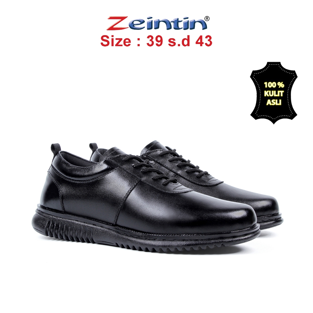 Zeintin - Sepatu Oxford Pria Formal Kasual Full Black Spatu Pantofel BJ-AJ