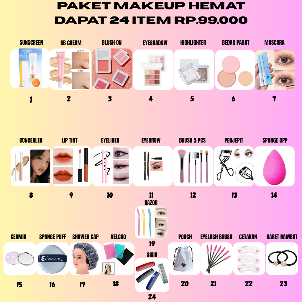 PAKET MAKEUP 24 ITEM TERMURAH DAN TERLENGKAP SET PAKET MAKE UP TOTAL 24 PCS