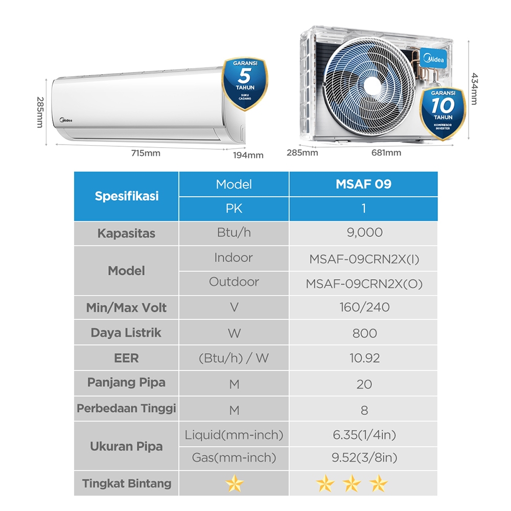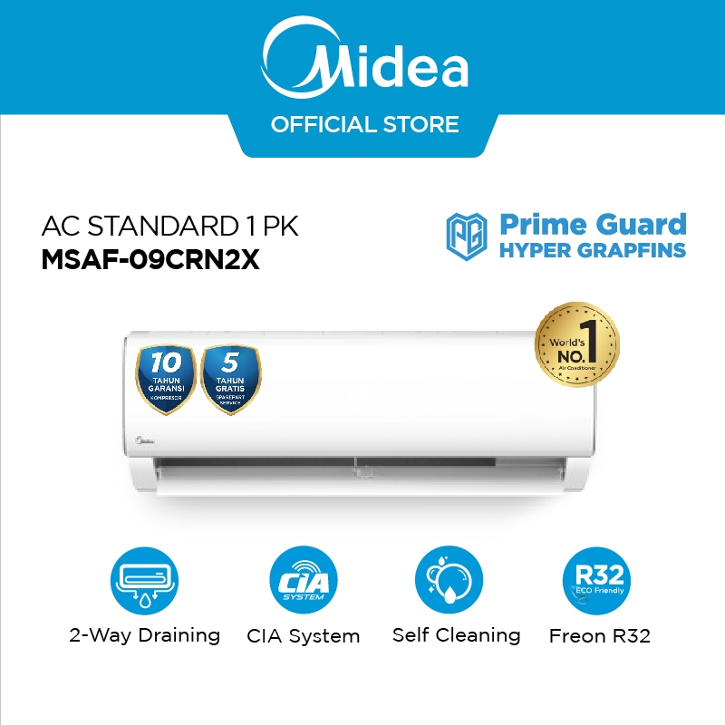 Midea AC Standard 1 PK R32 Series MSAF-09CRN2X Prime Guard Hyper Graphins Cepat Dingin (Unit Indoor & Outdoor)
