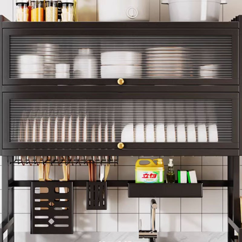 Rak Piring Wastafel Stainless Steel Lemari Rak Piring Tertutup Rak Dapur Multifungsi