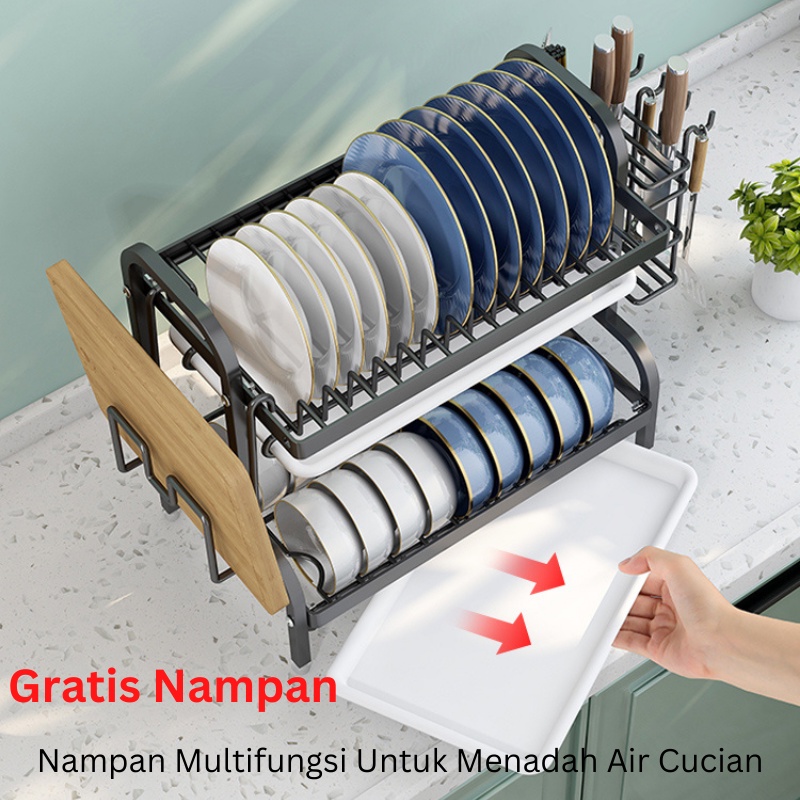 ES Rak Piring Dapur Stainless Steel Penyimpanan Rak Pengering Piring Rak Piring dan Mangkuk