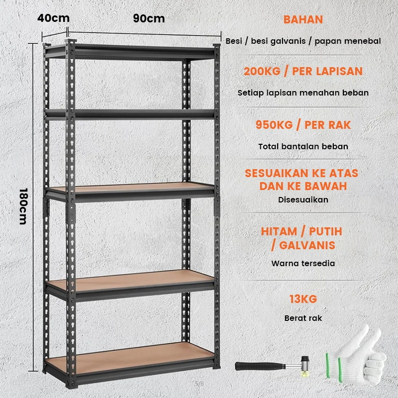 Rak Besi 5 Susun /Rak Gudang / Rak Dapur / Rak Besi Serbaguna / Rak Aquarium 120x40x200cm