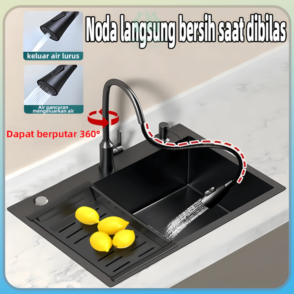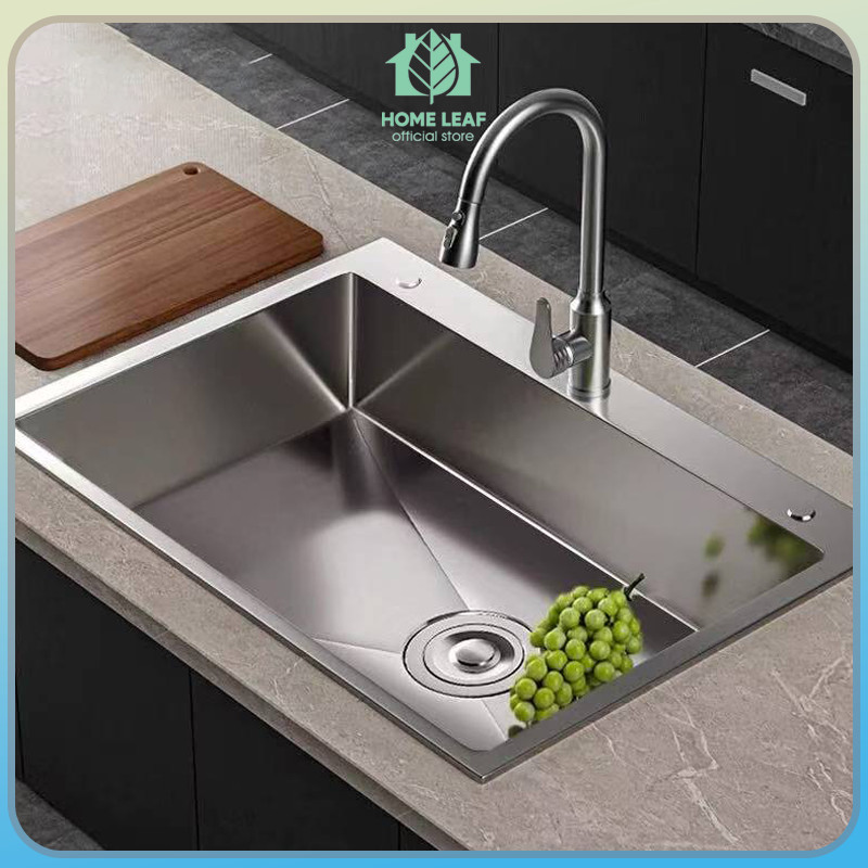 HOME LEAF - Wastafel Stainless Steel 3.0mm SUS304/Anti Karat + Kran Tarik - Cuci Piring Tahan Bocor - Garansi 3 Tahun