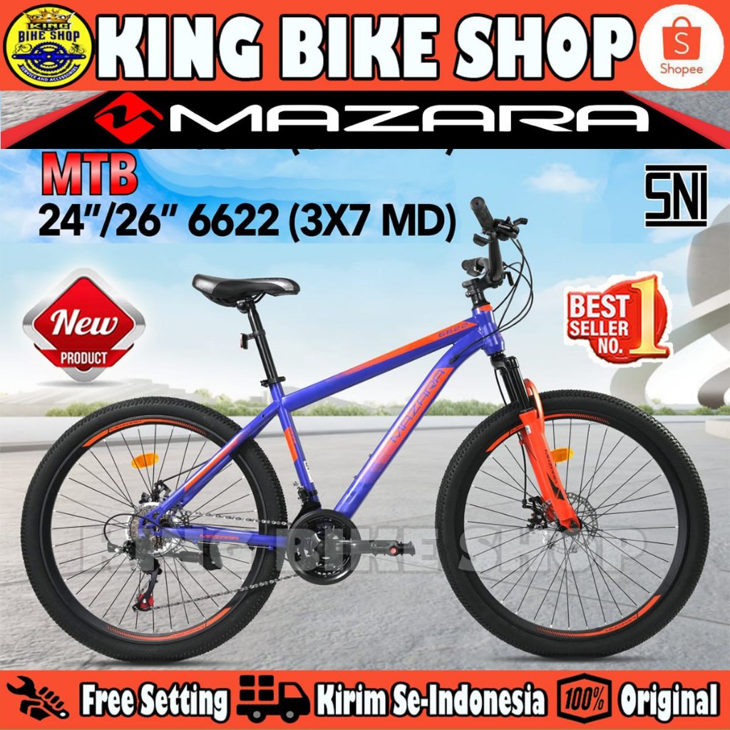 Sepeda Gunung MTB MAZARA 6622 Ukuran 24 26 Inch Rem Cakram 21 Speed Dewasa Remaja
