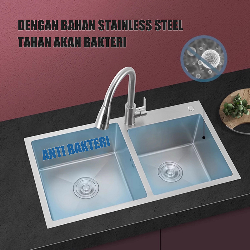 ES Kitchen Sink Wastafel Stainless Steel Bak Cuci Wastafel Dapur Lengkap Tarik Adjustable Terbaru