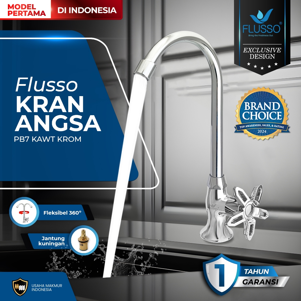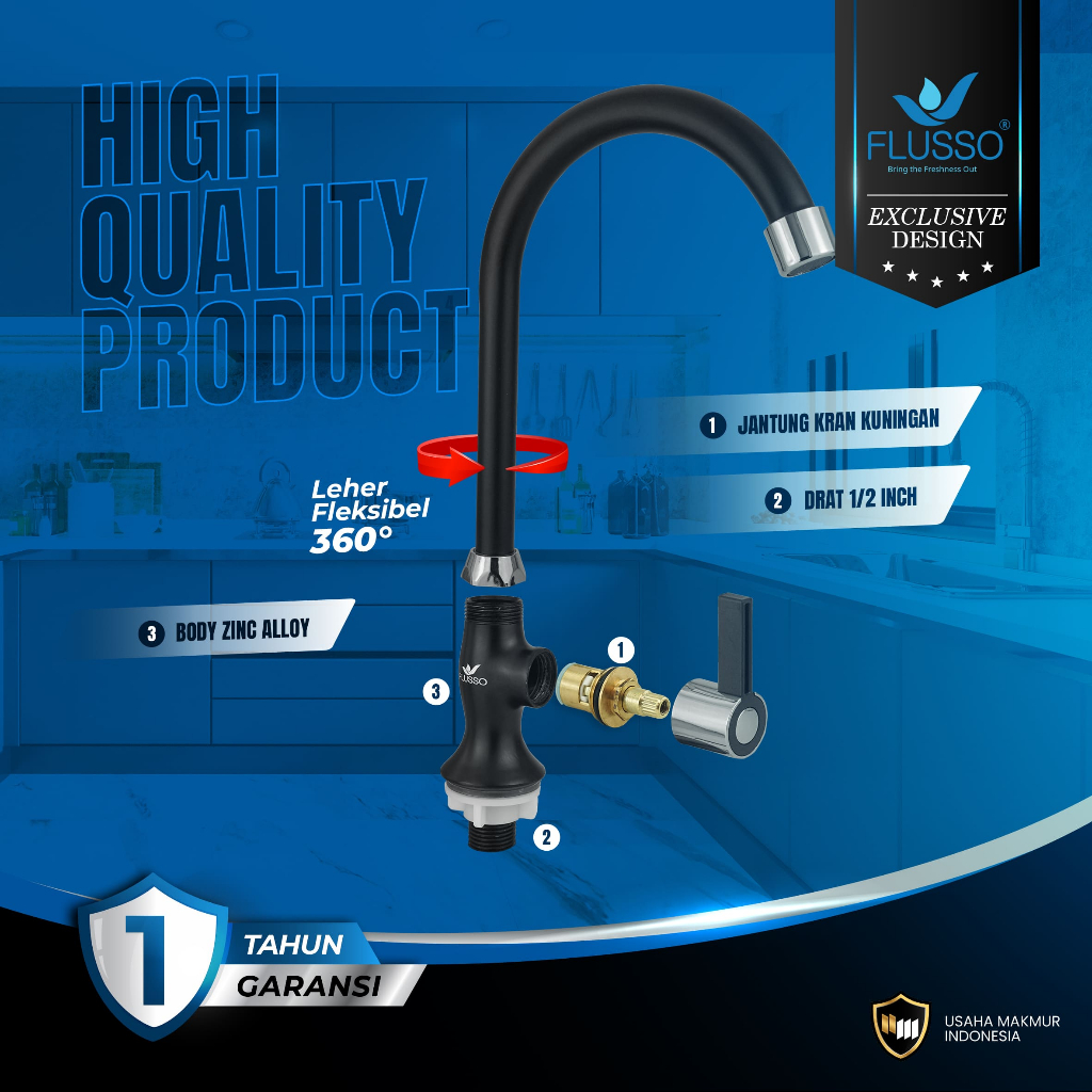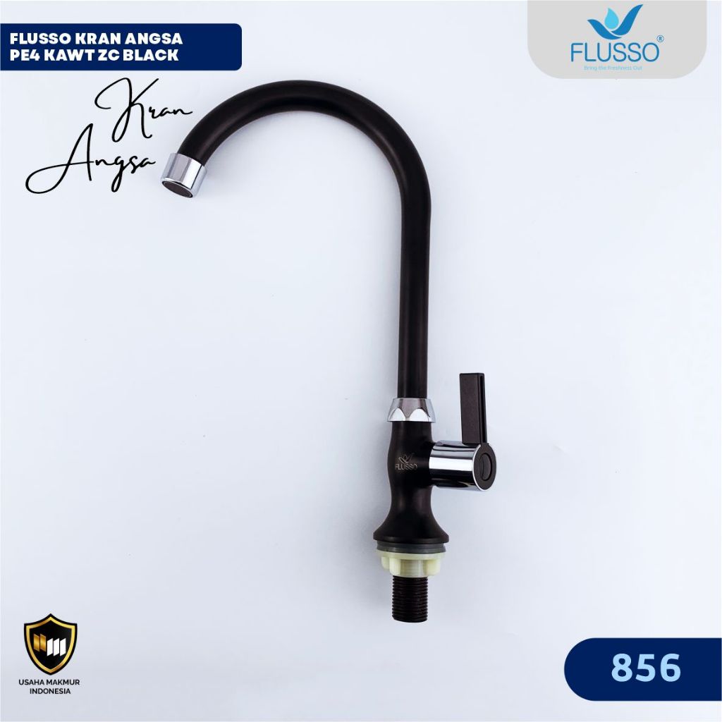 FLUSSO Kran Angsa Wastafel Black | Kran Cuci Piring Angsa 1/2 Inch Jantung Kuningan 856