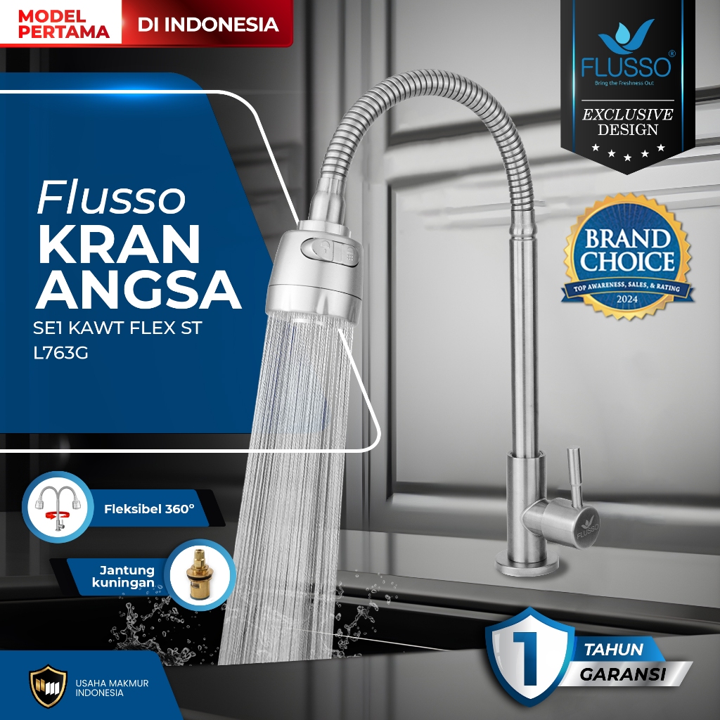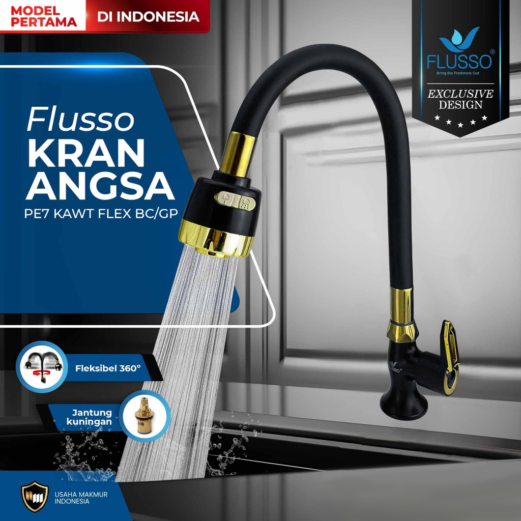 FLUSSO Kran Wastafel Fleksible Jantung Kuningan Keran Angsa Cuci Piring Dapur Garansi 1 Tahun 860