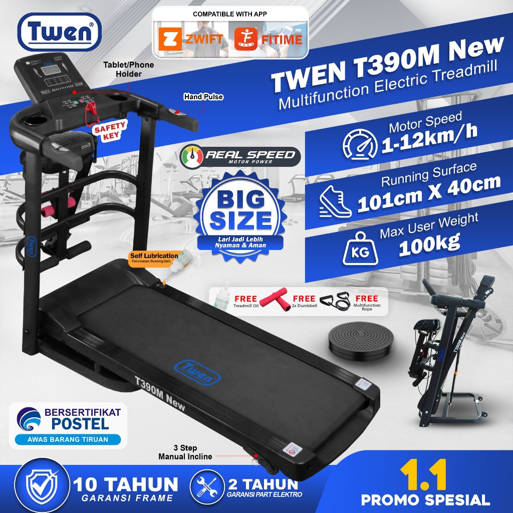TWEN T309M T390M Treadmill Listrik Treadmill Portable Treadmill Multifungsi Treadmil Lipat Treadmill Electric Low Watt Alat Olahraga