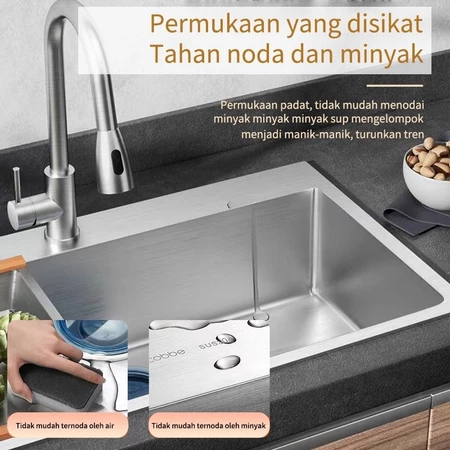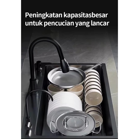 5040/5243/5545/6045Paket Lengkap Kitchen Sink Stainless + KRAN PIPA TARIK SUS 304 /Bak Cuci Piring Minimalis SUS 304