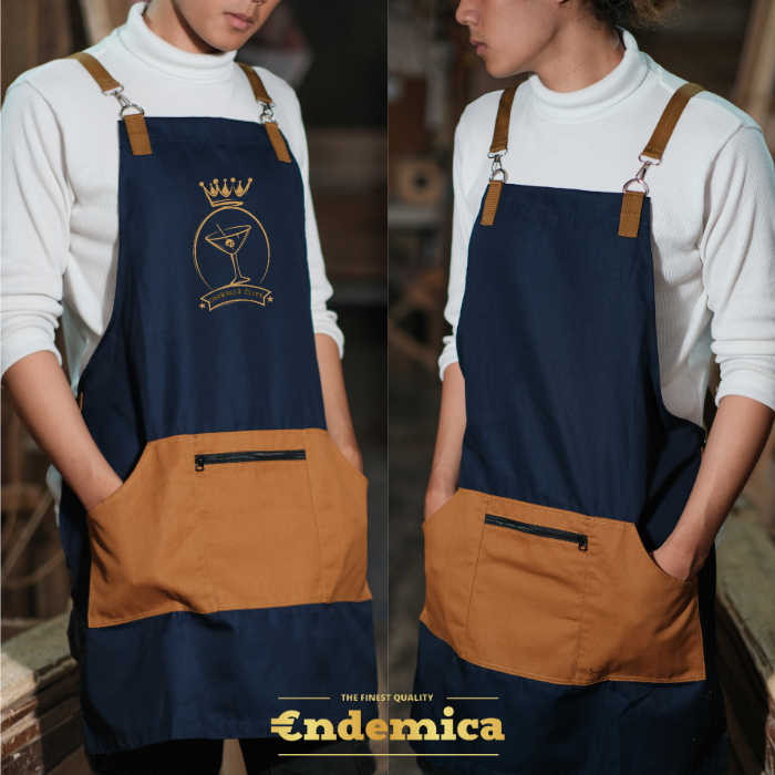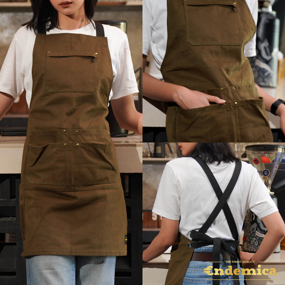 Celemek Barista Barberman Full Katun Premium Tebal Apron Coffee Shop Barbershop Tali Silang X Strap Model Baru