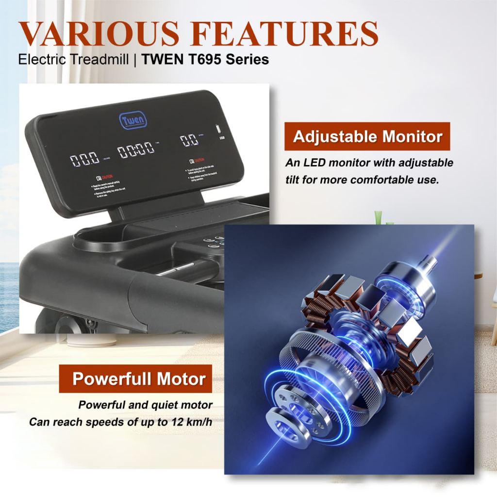TWEN T695s T695MT T695A T695A Multi series Treadmill Listrik Treadmill Portable Treadmill Multifungsi Treadmil Lipat Treadmill Electric Low Watt Alat Olahraga