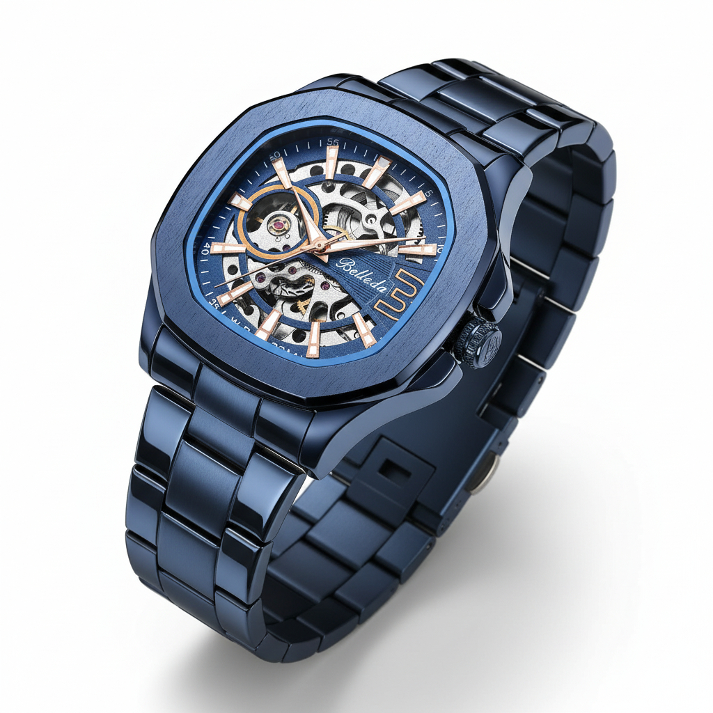 Jam Tangan Pria Automatic Belleda 9633 Rantai Stainless Steel Anti Air Fashion Watch ORI