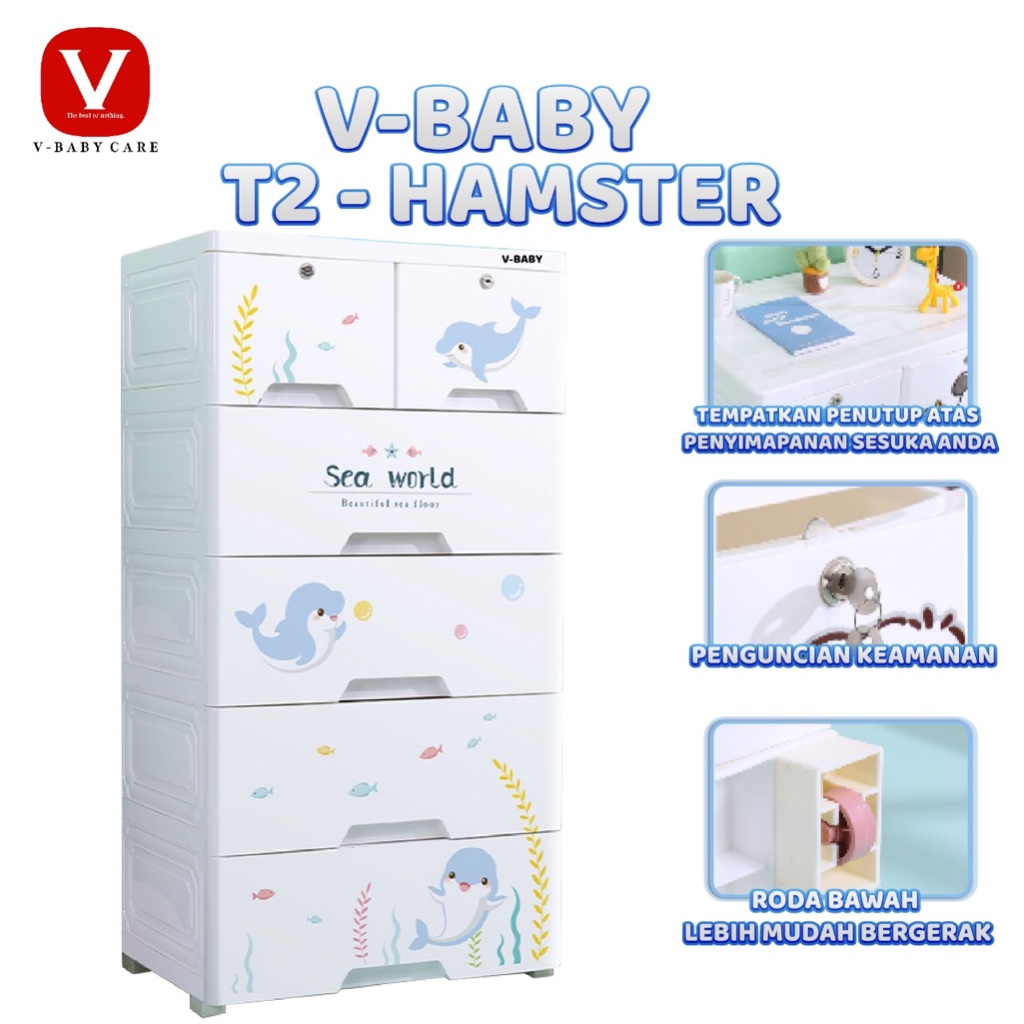 V-BABY CARE Lemari pakaian anak/ lemari plastik pakaian/lemari plastik premium import/lemari kabinet-V-BABY CARE T2