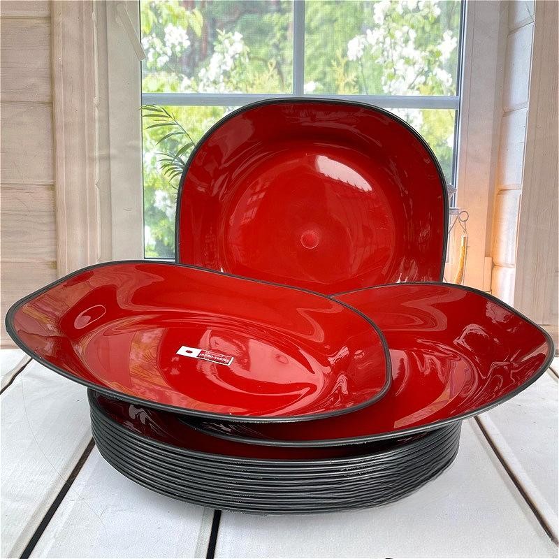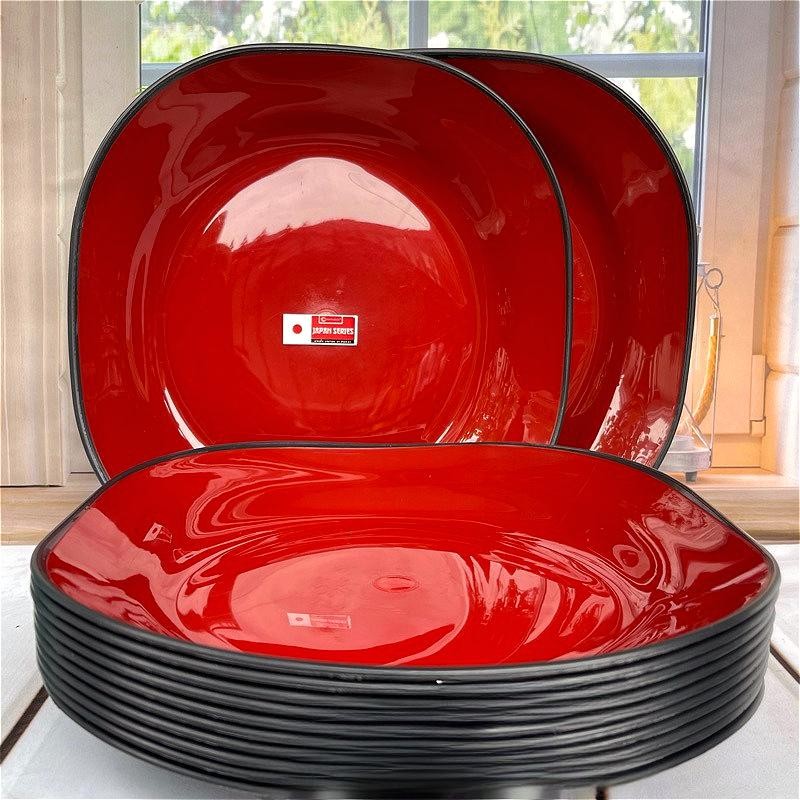 12 Pcs Piring Mie Ramen Piring Makan 9 Inch Plastik Tebal New Cornelius Anti pecah Warna Merah Hitam