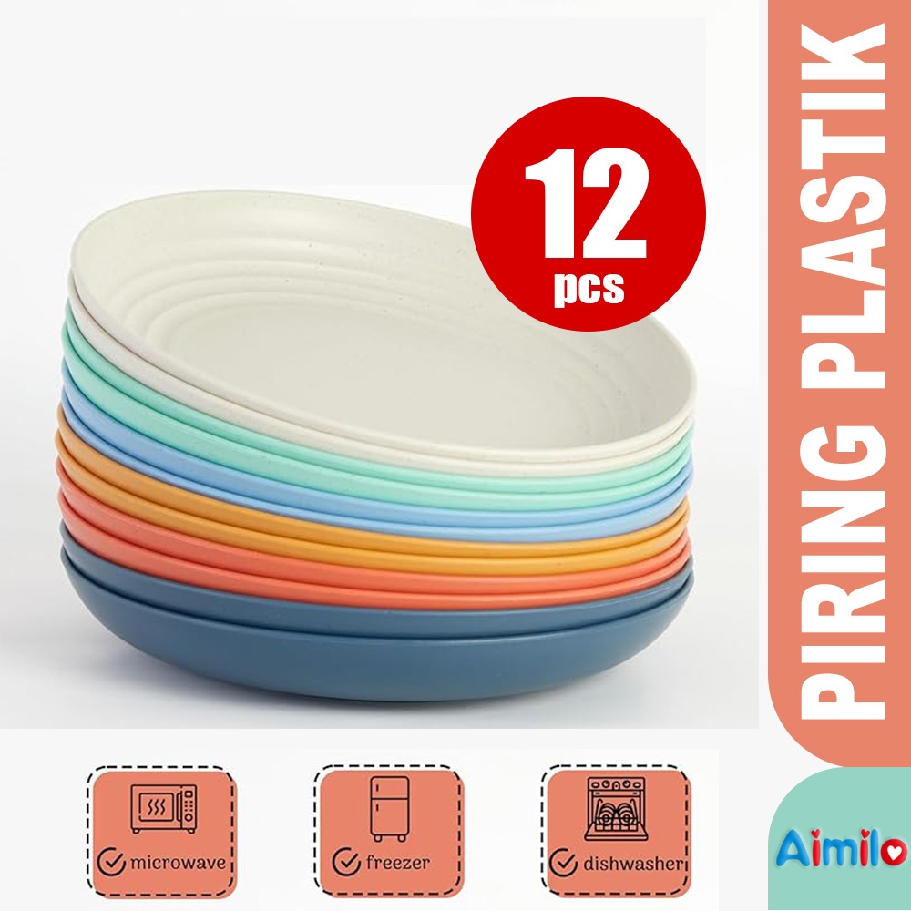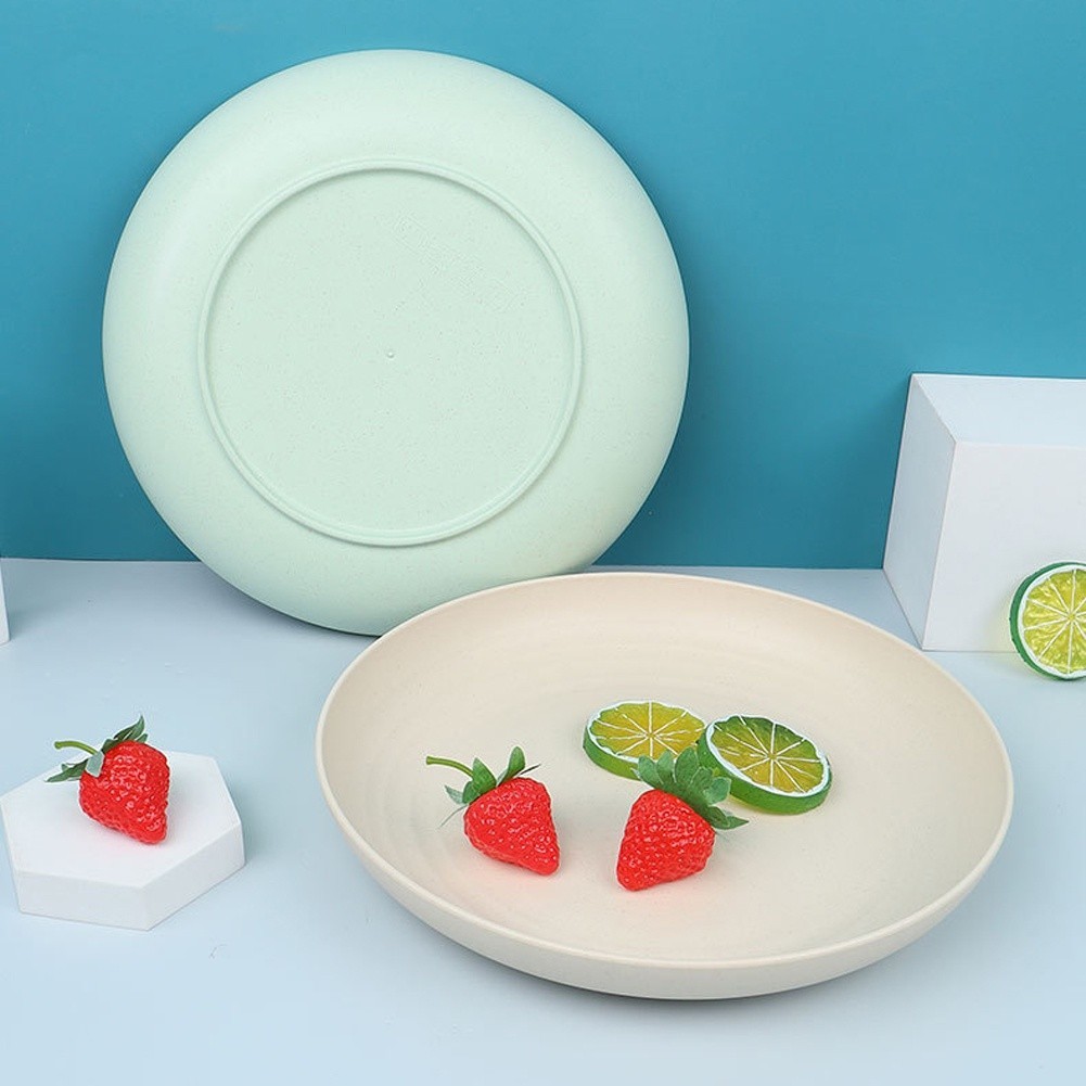 Paket 12 PCS Piring Makan Saji 20 cm Round Plate Piring Saji | Ramah Lingkungan | Wheat Straw Plates | Piring Plastik Mi