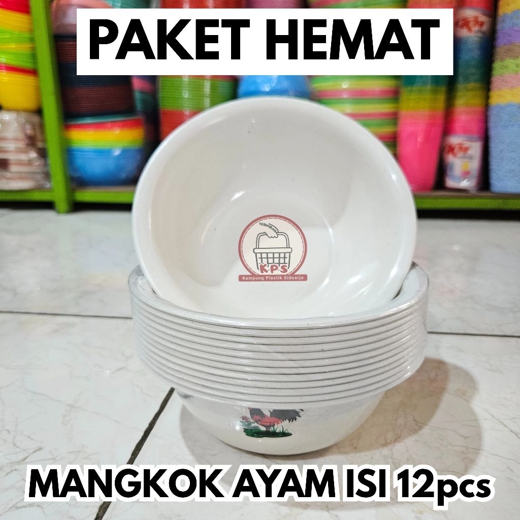 1 LUSIN PAKET HEMAT ISI 12 PCS Mangkok plastik ayam jago TEBAL / mangkok bakso / mangkok bubur MURAH
