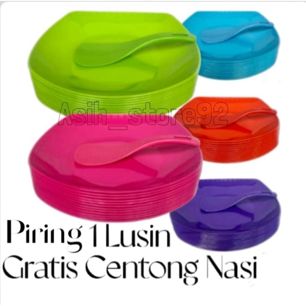 1 LUSIN piring plastik dan 1 pcs centong nasi