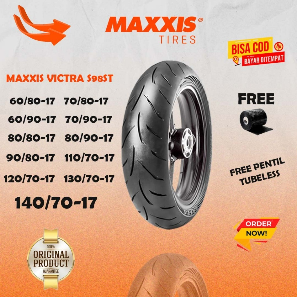 ( PAKET HEMAT 2 BAN RING 17 ) BAN LUAR MOTOR MAXXIS VICTRA (60/80-17 RATA) TL