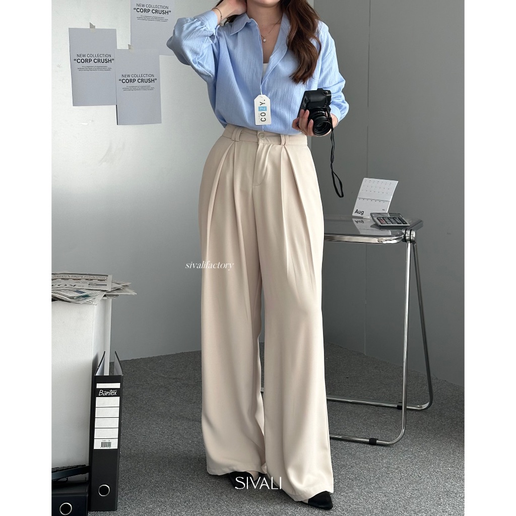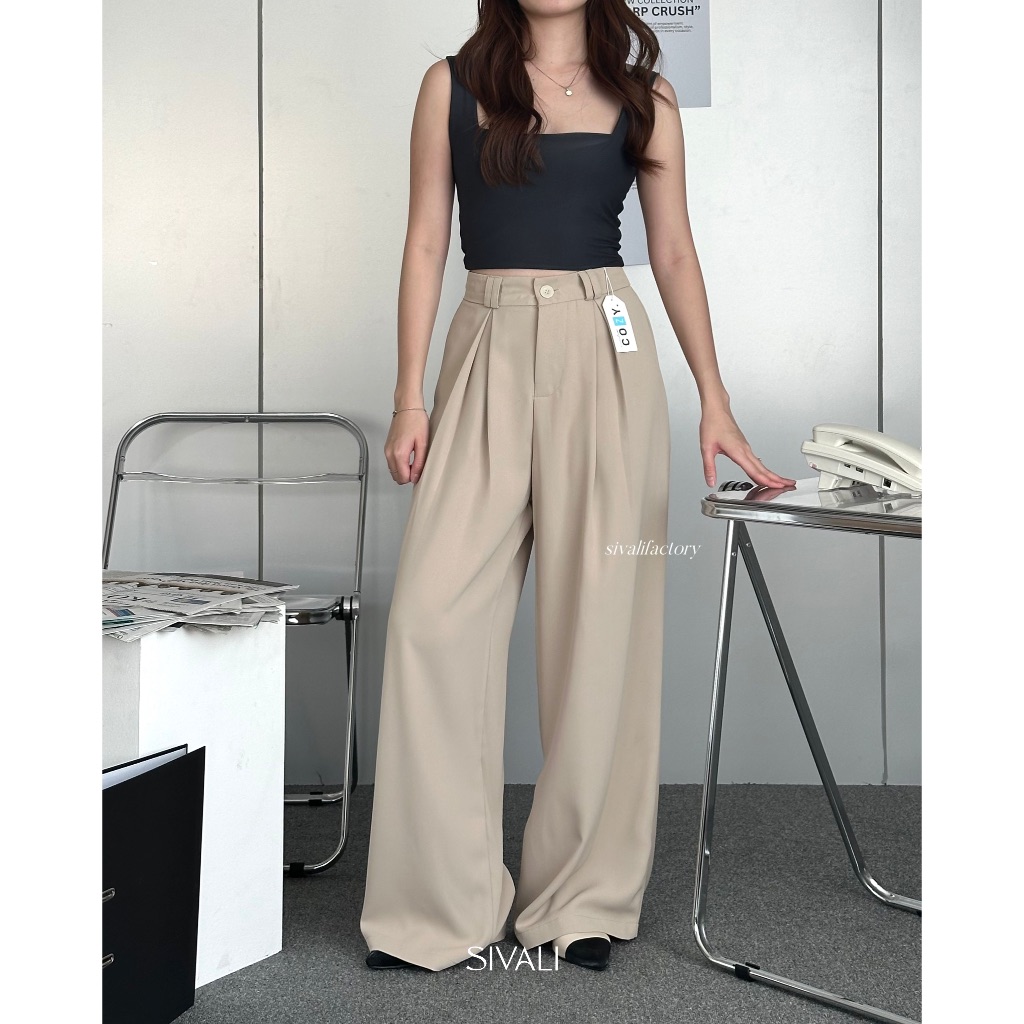 Sivali Loui Loose Pants - Highwaist Cullote Polyester - Celana Kulot Panjang Wanita Anti Kusut - Celana Kantor Formal C