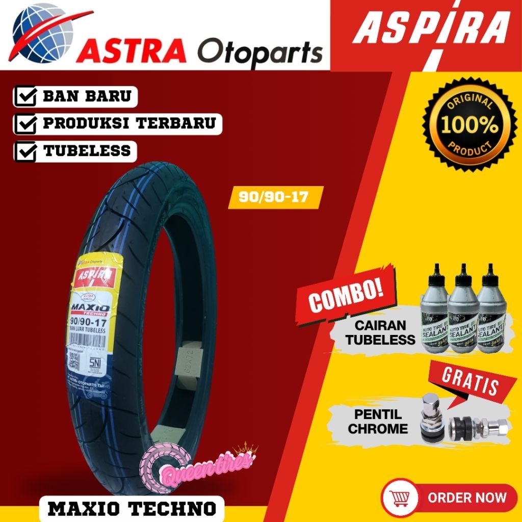 Ban Baru Paketan Tubeless Aspira Techno Astra Ring 17 Motor Manual Bebek 70/90-17 80/90-17 90/90-17