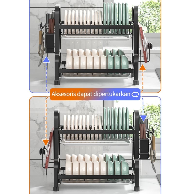 Rak Piring Stainless Steel Rak Cuci Piring Penyimpanan Dapur Muat Mangkuk Dan Piring
