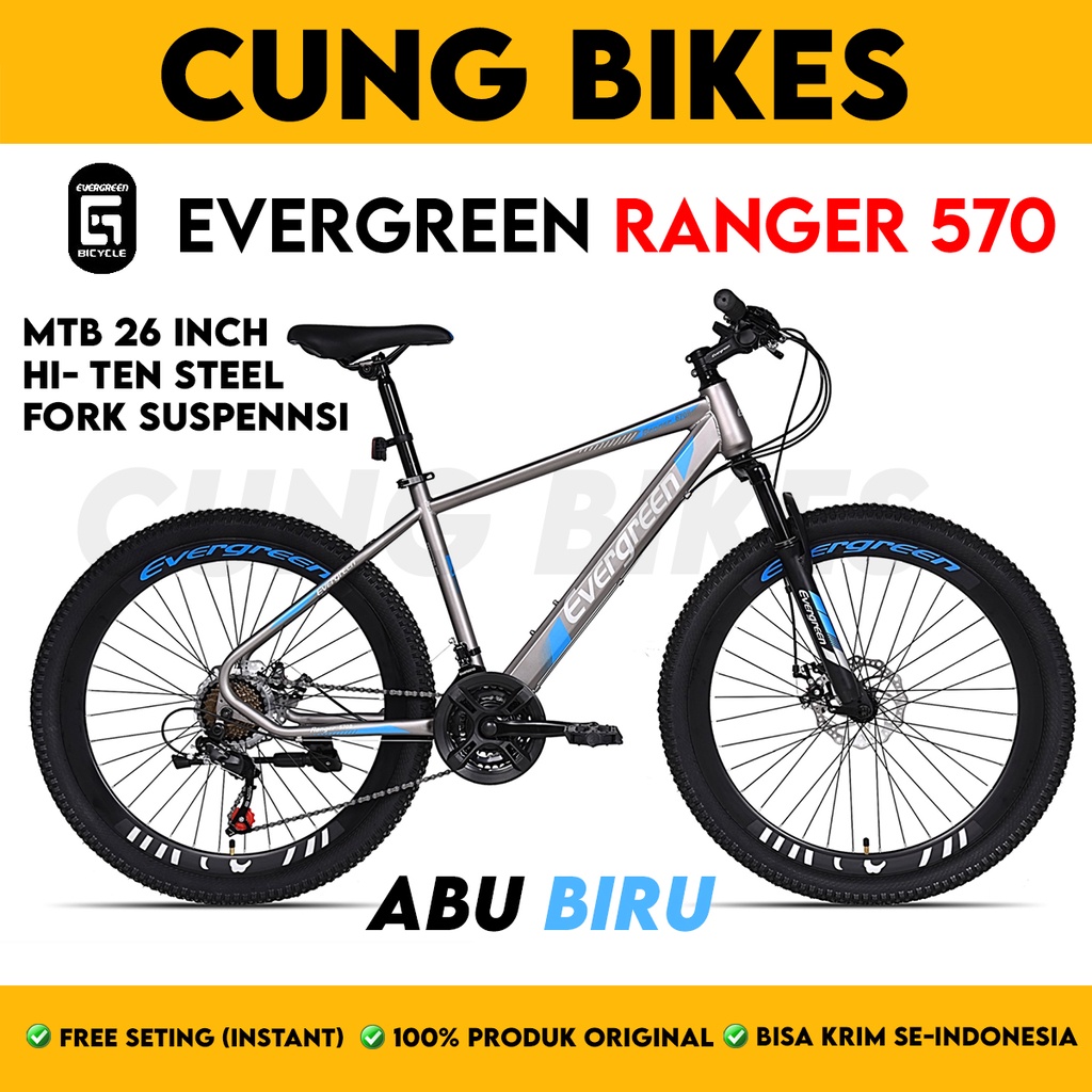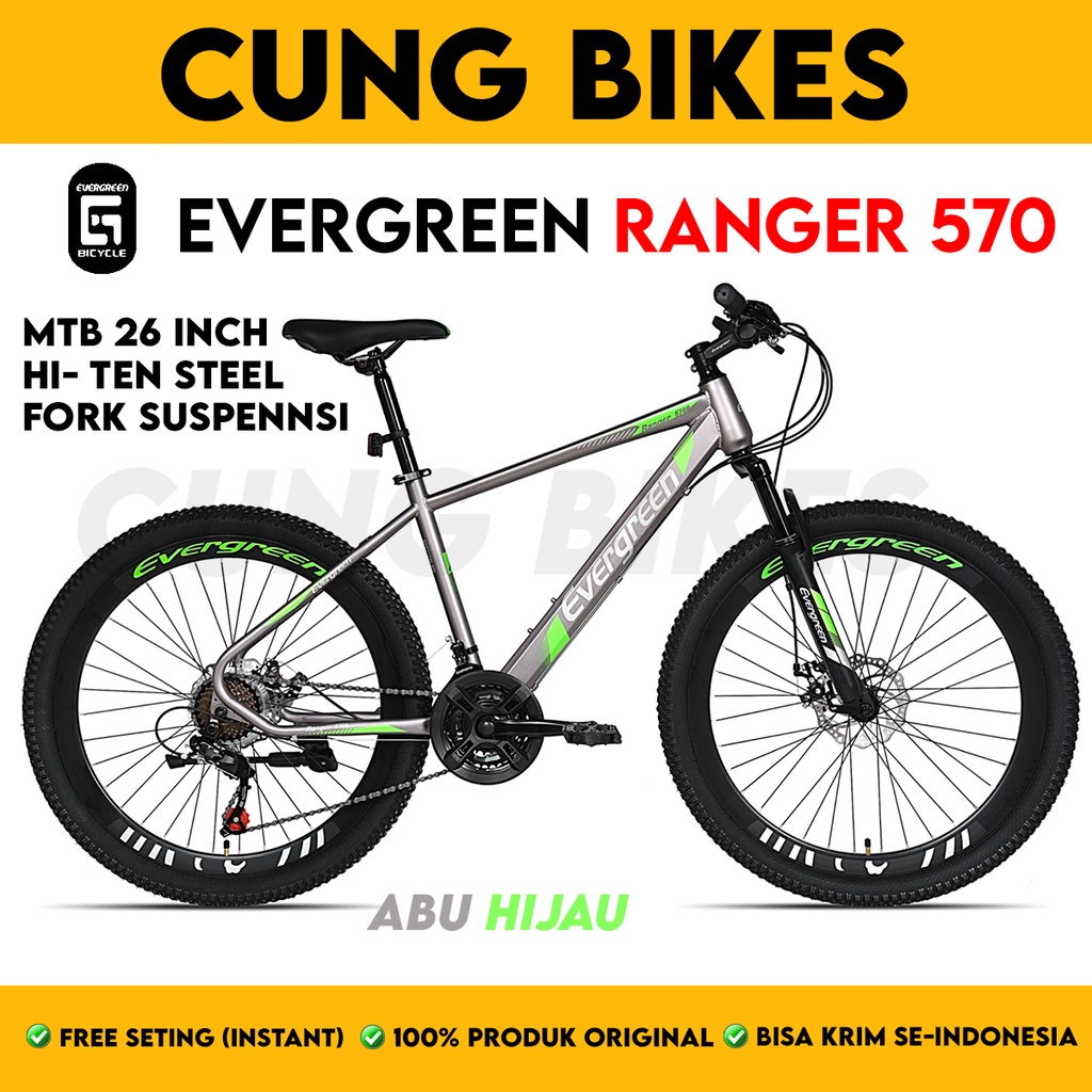 SEPEDA GUNUNG MTB 26 INCH EVERGREEN TYPE 570 21 SPEED VELG TINGGI DOUBLE DISC BRAKE