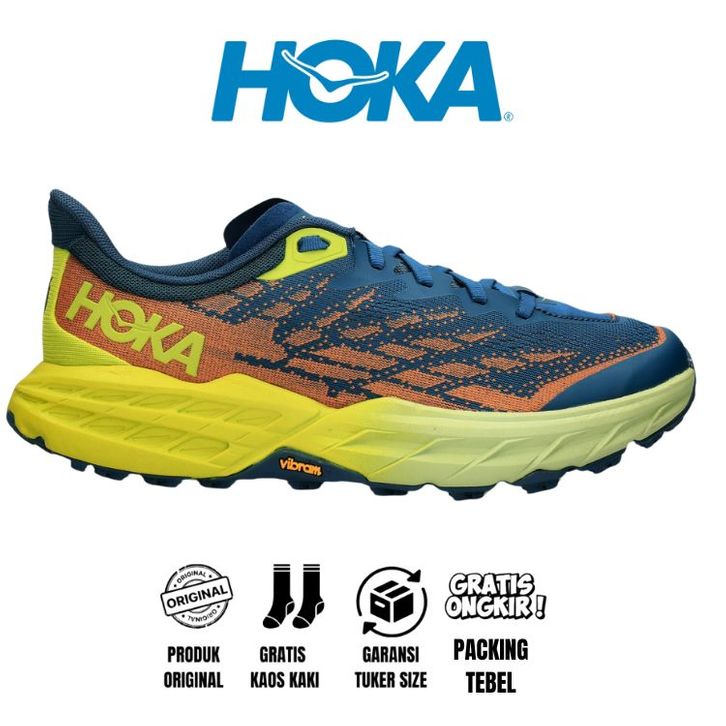 SEPATU H0KA ORIGINAL SEPATU LARI HOKA ONE ONE SPEEDGOAT 5 YELLOW BLUE OFFICIAL STORE
