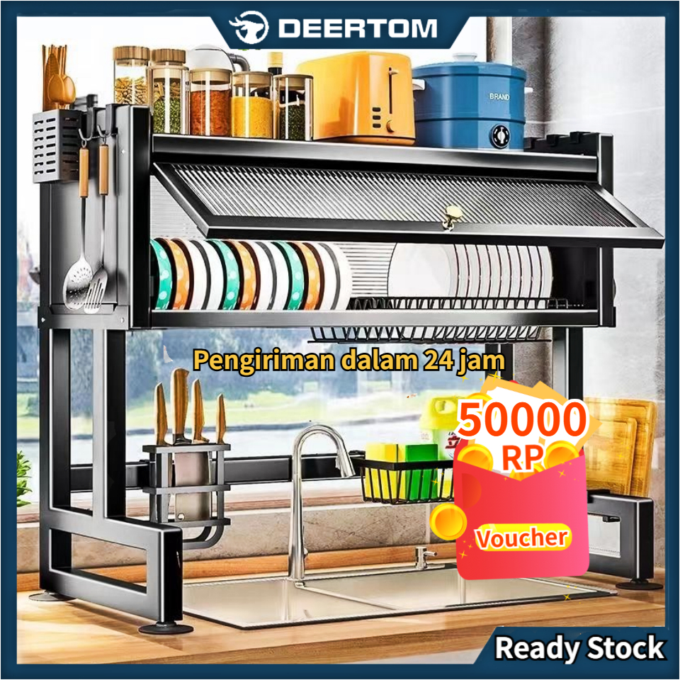 Stainless Steel Rak Cuci Piring Rak Piring Tertutup Kitchen Rak Piring Wastafel Sink Rak Dapur Rak Penyimpanan Dapur/ID6