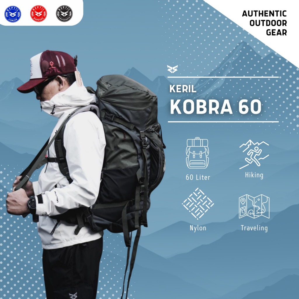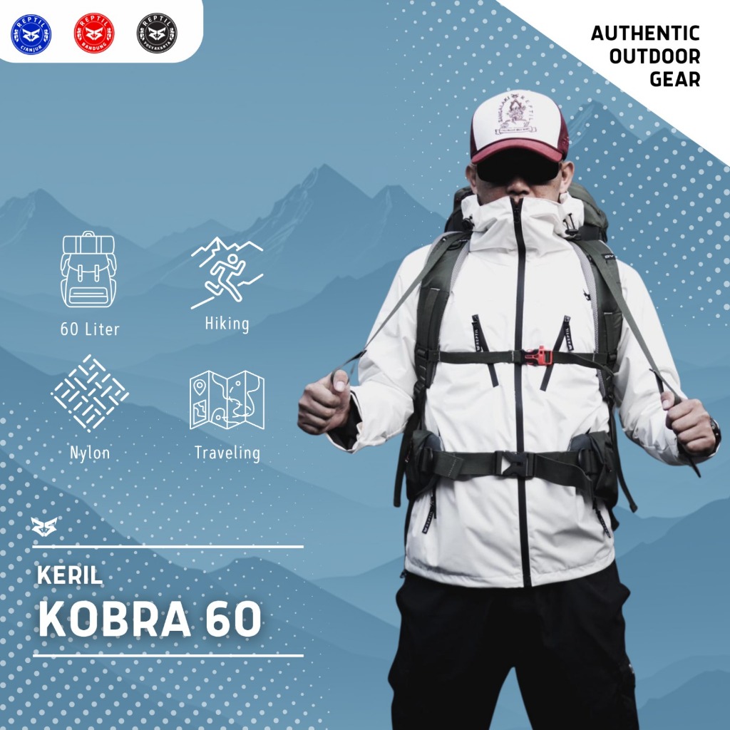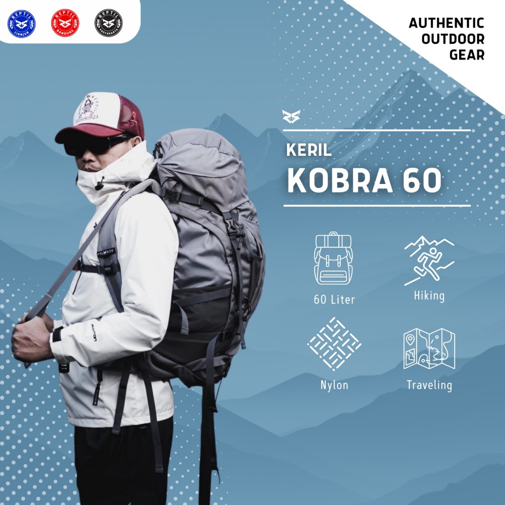 Tas Gunung/Carrier 60L Pria/Wanita Reptil Adventure KOBRA Series