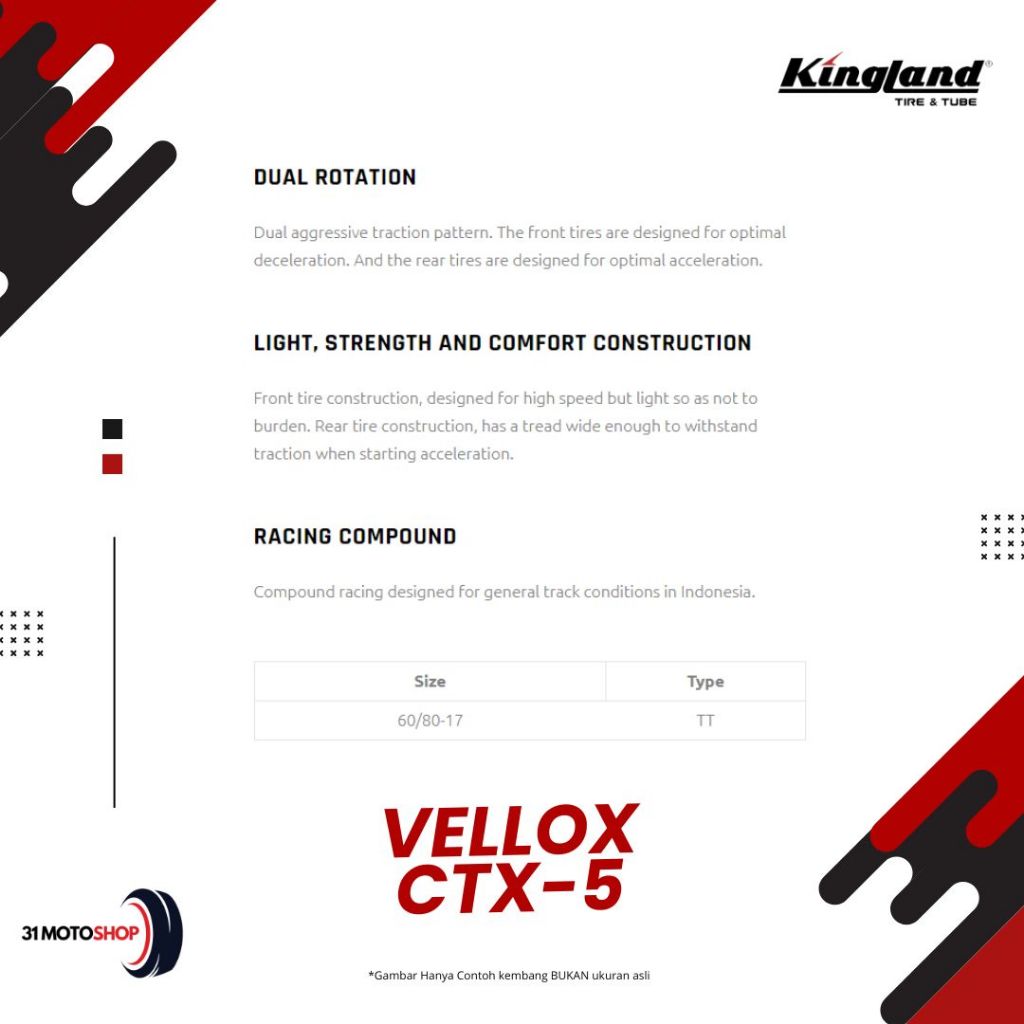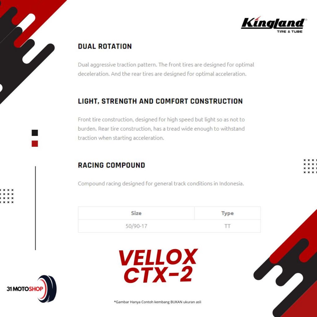 Ban Luar Motor Kingland Drag King Vellox CTX 2 dan CTX 5 50 60 / 90 90 Ring 17 Tubetype